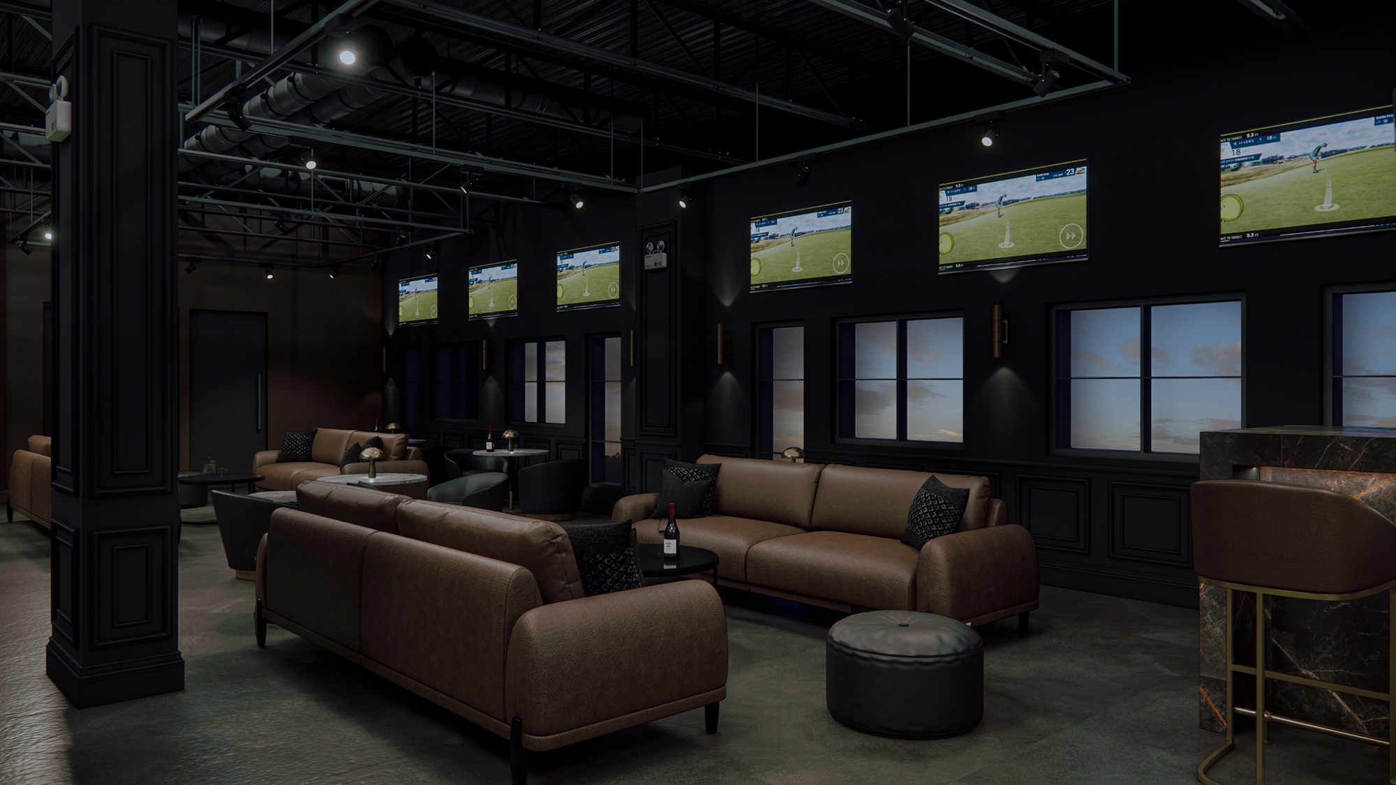 The Golf Vault blends high-performance simulator technology with a premium lounge atmosphere.